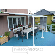 Hliníková pergola ke zdi, ve které naleznete příjemné místo odpočinku hned vedle vašeho domu. Konstrukce pergoly je z odolné hliníkové slitiny a je nastříkaná práškovou vypalovanou barvou (komaxit), a proto trvale odolává přírodním klimatickým vlivům. Střecha je vyrobená z polykarbonátových dvoustěnných desek síly 6 mm, které dodáváme ve třech barvách - čiré nebo mléčně bílé průsvitné (OPÁL) nebo kouřově hnědé (BRONZ). Z důvodu zajištění maximální kvality je použit kvalitní polykarbonát MARLON (výrobce Brett Martin Velká Británie), který v ČR prošel náročným testy ve státem akreditovaných zkušebnách jako stavební materiál. Smluvní prodloužená záruka 10 let na nerozbitnost polykarbonátu krupobitím je u produktů od LANIT PLASTU samozřejmostí.