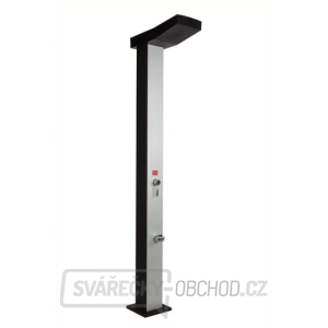 Zahradní solární sprcha je konstruována jako těleso ve tvaru sloupku, jeho ALU plášť slouží jako zásobník teplé vody a zároveň funguje jako sluneční kolektor. Tento plášť je samonosný. Přívodní vodovodní armatury jsou uloženy uvnitř tělesa sloupku. Ovládací páka, sprchová hadice s růžicí a držák sprchové růžice, jsou umístěny vně sprchového tělesa. Spodní část sloupku je opatřena montážní paticí. V zadní části sloupku je umístěna napouštěcí armatura.
