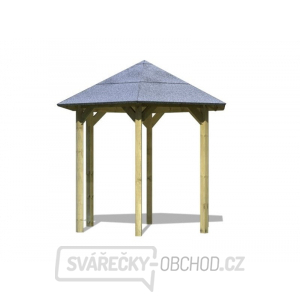 Pavilon má šestiboký tvar a slouží jako místo odpočinku pro dvě osoby. Čtyři sloupky 9 x 9 cm podpírají střechu s masivními příčnými podpěrami. Konstrukce altánu je tlakově impregnována a je tak dobře chráněna proti dřevokazným houbám i hmyzu, ale i proti nepříznivým povětrnostním podmínkám. Impregnace je zdravotně nezávadná a naprosto bezpečná. Vzhledem k velkým plochám střechy a zatížení větrem je nutné připevnit altán k zemi pomocí odpovídajících H kotev v délce cca 60 cm (nejsou obsahem dodávky).