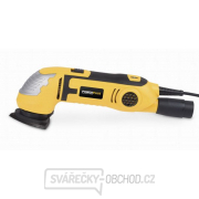 Vibrační trojúhelníková bruska PowerPlus POWX0490, 300 W je výkonná bruska s elektronickou regulací otáček. Vibrační bruska má měkčené držadlo a systém upínání na suchý zip. Vibrační bruska má nástavec na připojení vysavače, ke kterému je možné připojit většinu vysavačů.