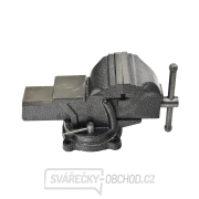 Otočný svěrák GEKO 4" 100mm je vyrobený z vysoce kvalitních materiálů. Protiskluzové ocelové čelisti s křížovými výřezy. Odolná a pevná konstrukce. Možnost otáčení svěráku 360 °.