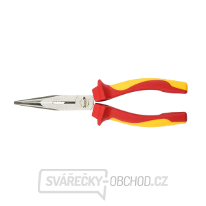 Kleště půlkulaté přímé Geko, 200mm, VDE jsou profesionální dlouhé izolované kleště vyrobené z chromvanadiové legované oceli s délkou 200 mm. Jejich ergonomická, vícesložková rukojeť poskytuje účinnou izolaci až do 1000 V a jsou proto ideální pro všechny druhy prací na nízkonapěťových instalacích. Kleště jsou vhodné pro řezání kabelů a měkkého a tvrdého drátu.