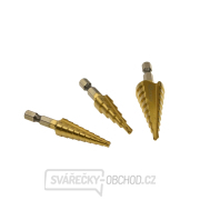Stupňovité kuželové vrtáky GEKO 1/4", 3ks je sada kuželových vrtáků ve velikostech 3-12, 4-12 a 4-20 mm od značky GEKO. Vrtáky s uchycením 1/4" HEX. Vyrobeny z HSS oceli s titanovým povlakem. Umožňují vrtání dokonale kulatých otvorů do oceli, mosazi, mědi, hliníku, dřeva a plastu.
