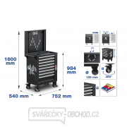 - v boční skříňce se nachází 2 odkládací přihrádky pro spreje, nářadí a lahve a také perforovaná stěna ve výklopném dveřním prvku pro montáž háčků na nářadí
