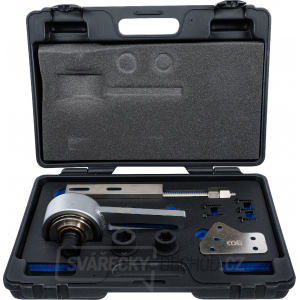 Měnič točivého momentu v kombinaci s držákem a přídržnou deskou, vhodný k povolení a utažení šroubu řemenice klikového hřídele podle zadání výrobce. Převodový poměr zesilovače točivého momentu: 1:5.