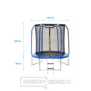 - celková výška trampolíny včetně ochranné sítě v nejvyšším bodě: 200 cm