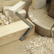 Truhlářský příložný úhelník od japonské značky SHINWA. Tělo z nerezové oceli. Ražená dvoustranná stupnice. Nula od vnitřní hrany příložníku. Vhodné pro rychlé a efektivní měření.