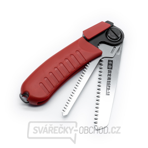 Malá skládací ruční pilka SENKICHI s plastovou rukojetí. 2 pilové plátky - dvě velikosti, dva různé počty zubů. Pro příčný řez.