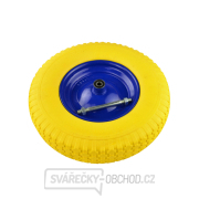 Kolečko na trakař bez trubek 4,00-8, vyrobené z odolného polyuretanového materiálu.