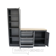 Maximální úložný prostor: Jednodveřová vysoká skříň s 4 policemi a dílenské skříňky se postarají o všechen nepořádek ve vaší dílně!