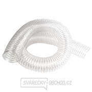 Vysoce kvalitní PU (polyurethanová) flexibilní 102mm průhledná odsávací hadice v délkách 2,5m , 5m  nebo 10 metrů. Je vyztužená poměděnou ocelovou spirálou a je ideální pro použití k odsávání třísek a pilin s jedním mobilním odsavačem od různých strojů, které jsou v dílně. Lze použít na odsávací hrdla okolo průměru 100mm. Dodává se ve stlačeném stavu. Délka hadice odpovídá maximálnímu natažení. Pro sání lehce abrazivních materiálů (hoblin, třísek), prachu, kouře apod.
