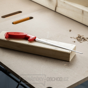 Japonská ruční pila speciálního typu - děrovka od značky HONKE RYOMA. Uzpůsobená pro vyřezávání otvorů do dřeva. Ozubená špička pro vytvoření ponorného zářezu. Délka čepele 210 mm.