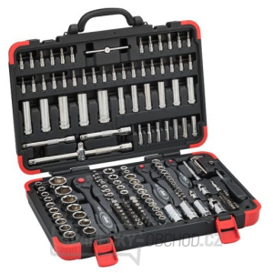172-dílná sada nástrčných klíčů / hlavic 1/4", 3/8" a 1/2" a dalšího nářadí v plastovém kufru.