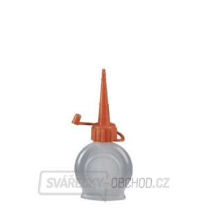 Transparentní olejnička bez pumpičky s objemem 20 ml a plastovou hubičkou s uzávěrem z odolného polyethylenu (LDPE) pro oleje, kyseliny a chemikálie.