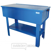 Vybavení: stabilní kovová konstrukce, 150 l mycí box, oběžné čerpadlo (1.200 l/min), flexibilní ocelová tryska k ostřikování čištěného předmětu, vyjímatelné vložené dno pro pokládání součástek, vypínač v ochranném pouzdru, vrchní víko s automatickou zdvihací podpěrou, stojná konstrukce včetně odkládacího meziprostoru.