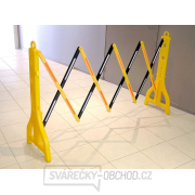 Lehká, přenosná plastová skládací a roztahovací zábrana (plynule od 250 do 2500 mm) má výšku 960 mm, pohodlně se přenáší a pro další zvýšení stability lze sloupky naplnit vodou nebo pískem.