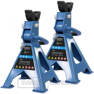 Stavitelné podpěry 3T určené k zajištění zvednutých vozidel, strojů apod. v podmínkách garáží, dílen, servisů atp. Přesné nastavení podpěrné výšky (→ 9-polohové, rozsah: 288 - 425 mm). Široká dosedací plocha opěrného sedla, dvojnásobné zabezpečení podpíraných břemen (→ hřebenové ozubení sloupku/pojistný kolík). Robustní svařovaná konstrukce, aretační páka s gumovou rukojetí.