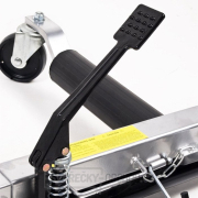 Zvedákem se najede ke kolu a pedálem se kolo nadzvedne. Jsou-li kolové zvedáky