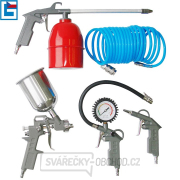 Sada pneumatického nářadí Güde z tlakově litého hliníku se skládá z hustilky pneu, spirálové hadice o délce 5 m, stříkací pistole na barvu a ofukovací pistole. Užití: huštění pneu; ofukování; stříkání/lakovaní