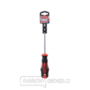 Šroubovák s ergonomickou rukojeť z tvrdého PP plastu, na povrchu měkčená kvalitní protiskluzovou TPR pryží, která zvýšuje kroutící sílu šroubováku. Dřík v matované úpravě z CrV. t ... (Podrobný popis)