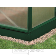 Konstrukce skleníku je zeleně lakovaná. Tento skleník disponuje pohodlnými dvoukřídlými dveřmi širokými 1,22 cm.